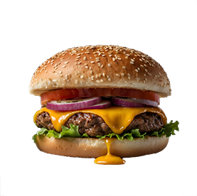 2 Steaks 45g, oignons, cornichons, fromage, sauce ketchup , sauce moutarde.