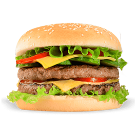 2 Steaks 45g, bacon de poulet, fromage, salade, tomates, sauce barbecue, sauce biggy.